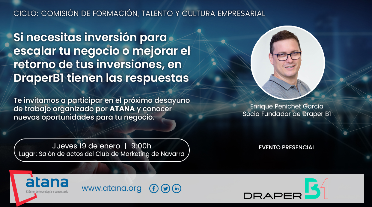 ATANA te invita a un nuevo e interesante desayuno de trabajo dentro del ciclo Talento y cultura empresarial en el sector digital de Navarra.