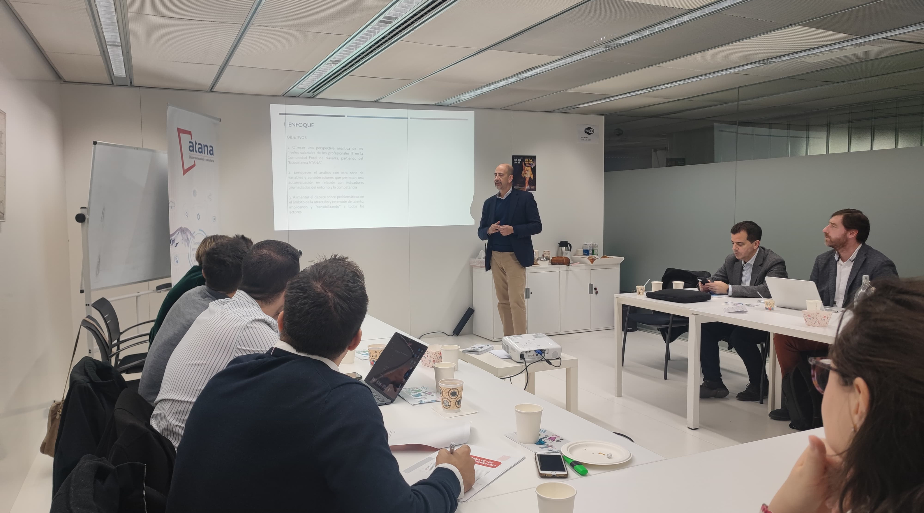 ATANA organizó el pasado viernes un desayuno de trabajo para presentar su informe Mapa Salarial IT Navarra 2023, elaborado en colaboración con Fundación VASS por ser una entidad con amplia experiencia en la elaboración de informes sobre perfiles técnicos.